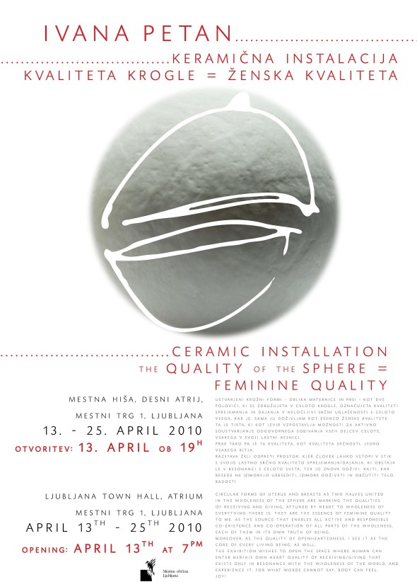 This entry was published on October 29, 2011 at 8:42 PM. It’s filed under about and tagged art, artist, awareness, ceramic, ceramics, consciousness, enost, exhibition, feminine, geomancy, geomantija, instalacija, installation, ivana, ivana petan, kamenina, keramika, lončarstvo, lončevina, man, moški, oneness, paper clay, paper porcelain, papirnata glina, papirnati porcelan, porcelain, porcelan, pottery, prostor, razstava, sculpture, skulptura, slovenia, slovenija, space, stoneware, umetnica, umetnost, zavedanje, ženska, čustvena inteligenca.